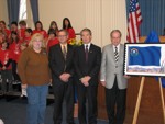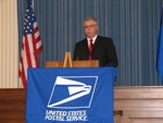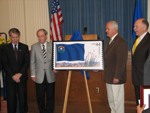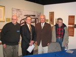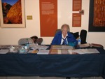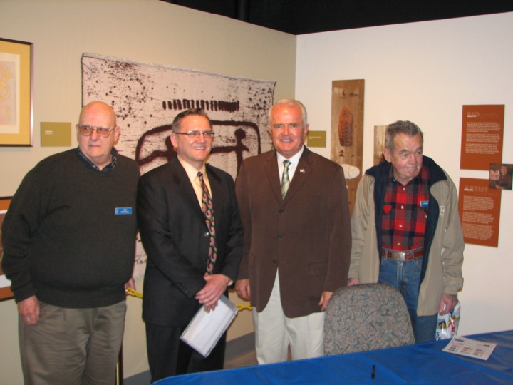 The Nevada Stamp Study Society had an exhibit and table inside the Nevada State Museum, just down the street from the State Capitol building where the new stamp was unveiled by Gov. Jim Gibbons. The governor and Carson City postmaster were at our welcome table to sign covers after the official ceremony.