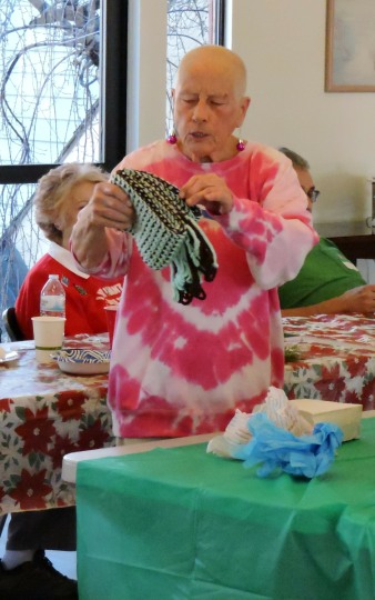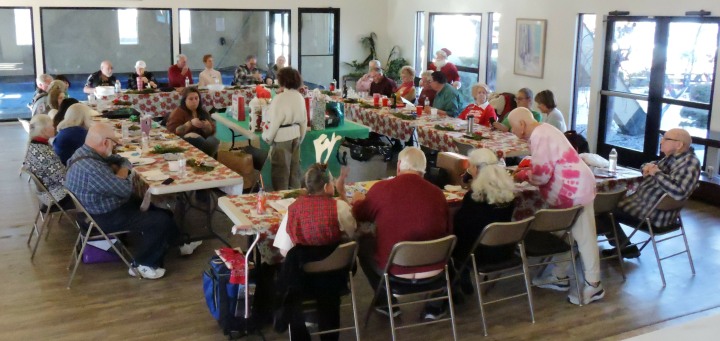 Every December the Nevada Stamp Study Society sponsors a Christmas/Holiday party for the members and families. A gift exchange is part of the fun. And to add excitement, a gift can be “stolen” instead of unwrapping an unseen gift. It’s interesting to see the strategy employed by families to steal gifts back and forth. 30 people were in attendance this year. Barbara Stanfield set up the table decorations. Erik Fields set up the room with the tables and chairs. Maggie Griener made the turkey, stuffing and mashed potatoes and coordinated potluck food items.