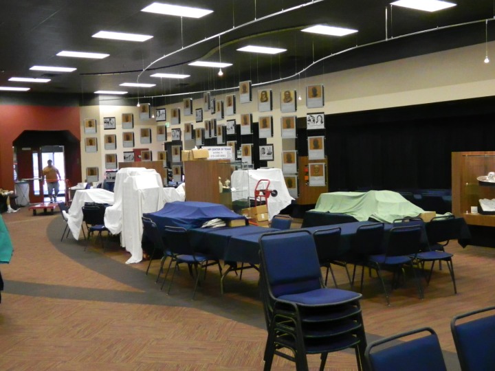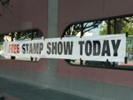 The stamp show photos are divided into two section: The Set-up, the Show, Channel 2 News, and the Take-down.