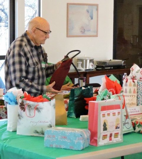 Every December the Nevada Stamp Study Society sponsors a Christmas/Holiday party for the members and families. A gift exchange is part of the fun. And to add excitement, a gift can be “stolen” instead of unwrapping an unseen gift. It’s interesting to see the strategy employed by families to steal gifts back and forth. 30 people were in attendance this year. Barbara Stanfield set up the table decorations. Erik Fields set up the room with the tables and chairs. Maggie Griener made the turkey, stuffing and mashed potatoes and coordinated potluck food items.